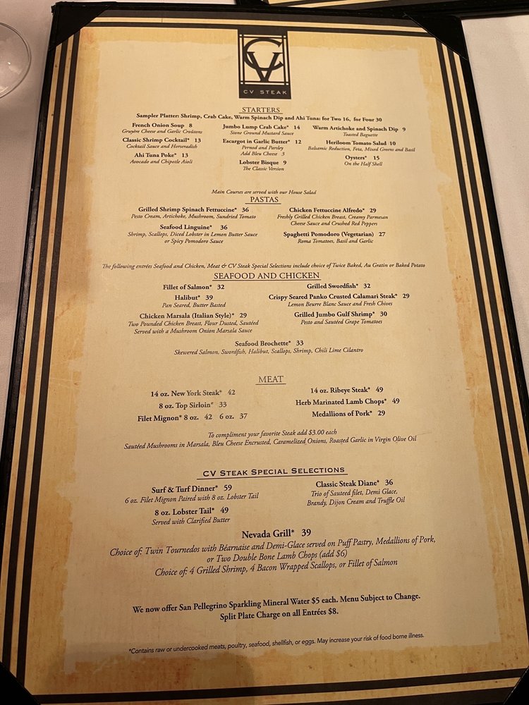 “ CV Steak House is in the casino on the 1st floor. The food and drinks was excellent. And many thanks to Michelle and Noah for the best services. ”